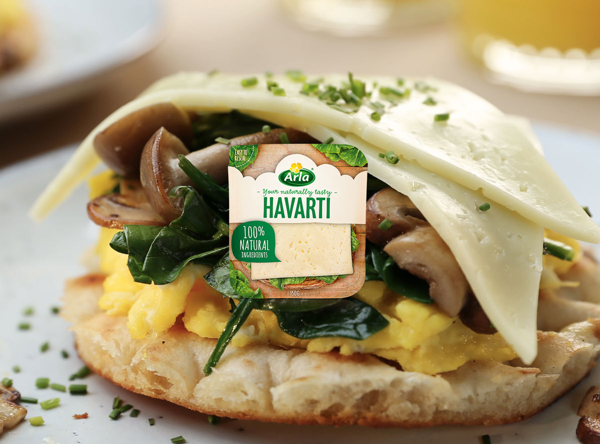 Have you tried Havarti with fried mushrooms and scrambled eggs as part of your breakfast spread? Get this and more inspiration here.