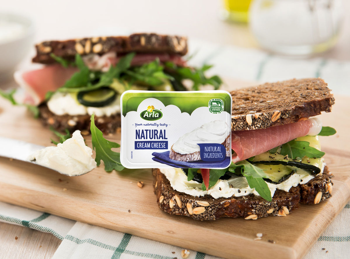 Made from only four natural ingredients Arla Cream Cheese is simply great taste and no additives. Enjoy the creamy and fresh taste of Arla Cream Cheese on toasted bread, in your sandwich, with a delicious snack – or any way you like.