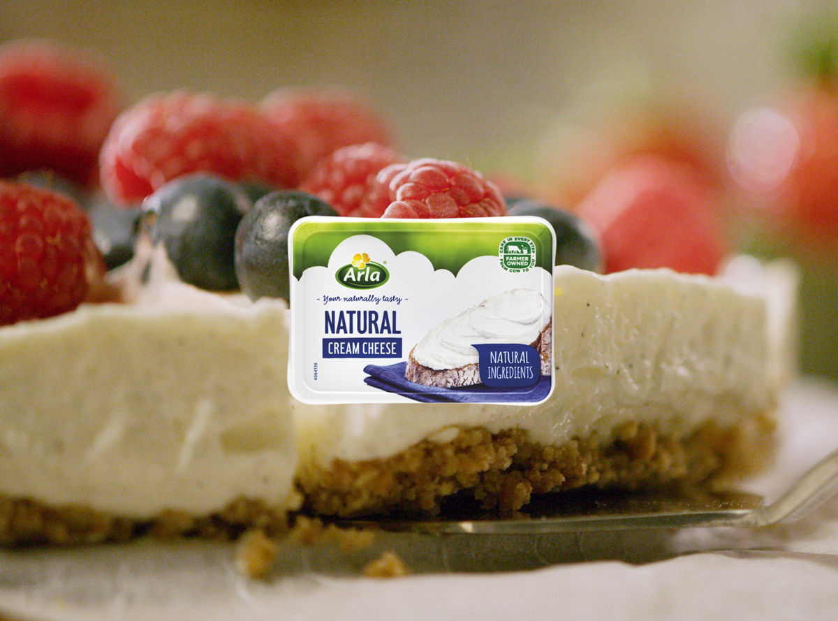 Because we use only four natural ingredients in making our Arla Cream Cheese its smooth and easy-to-handle structure makes it your perfect partner for a home-baked naturally tasty cheesecake filled will any fruit or other goodies you might choose.