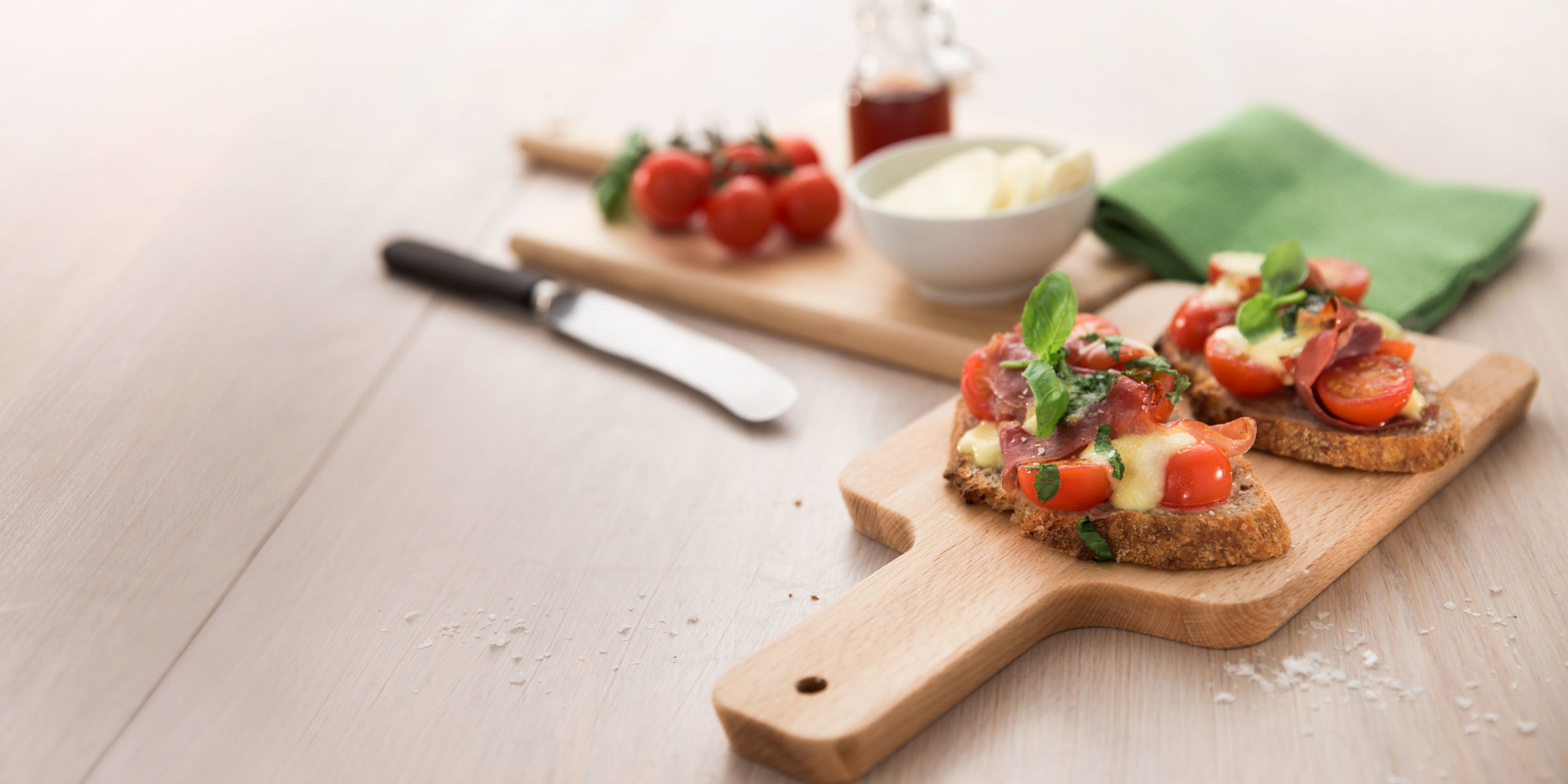 with tomatoes, Parma ham and Arla Mozzarella slices