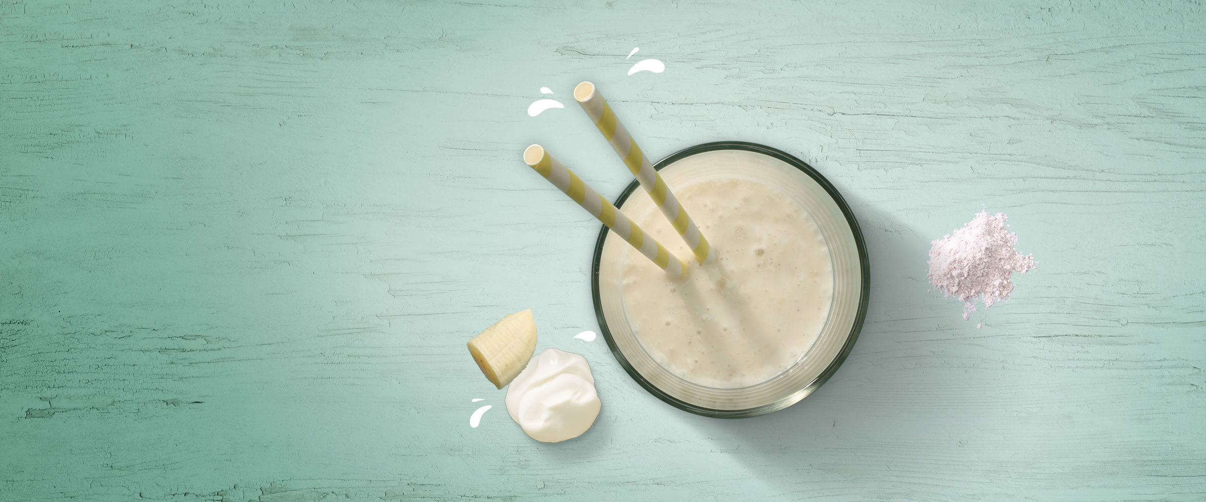 Blend everything together with a hand blender. Serve the delicious drinking skyr immediately.