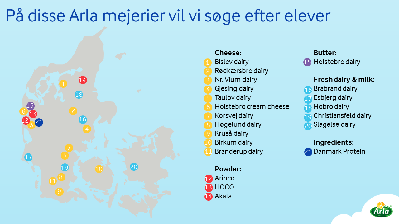 Er du interesseret i elevstillinger på andre mejerier, anbefaler vi dig at holde øje med denne side, hvor alle ledige stillinger vil blive slået op.