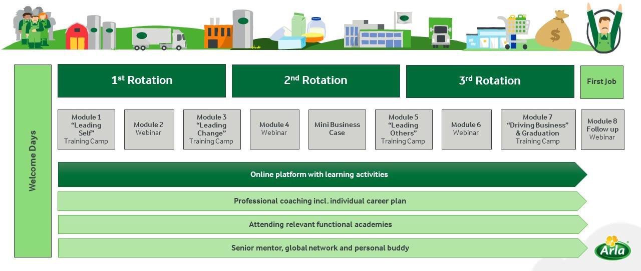 We will nurture your talent for becoming a future leader in Arla, and among other things, you will learn how to be a high-performer in a global, farmer-owned FMCG company. Being part of a graduate programme in Arla Foods is truly special and is a fantastic opportunity to kick-start your future career.