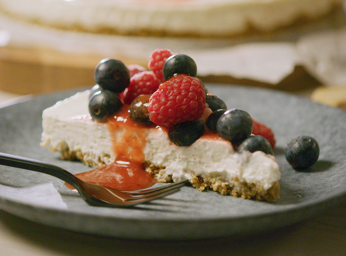 Enjoy a midday break with the balanced and easy-to-make freshness of this cheesecake made with the natural goodness of Arla Cream Cheese.